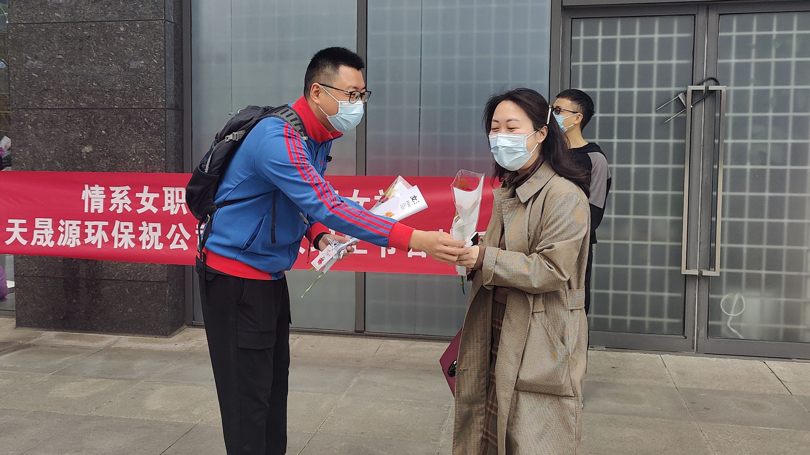 (天晟源環(huán)保工會主席姚夢為女職工獻(xiàn)花)