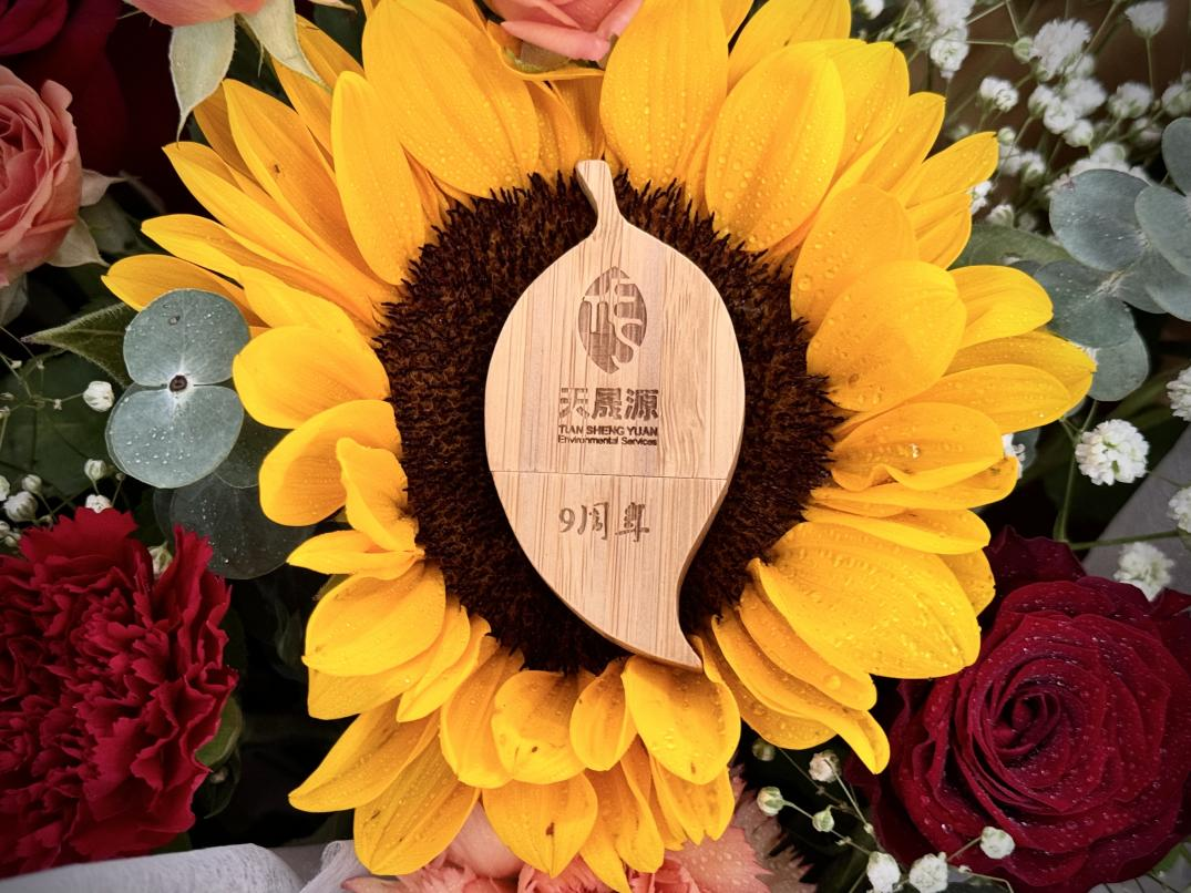 9月30日,天晟源環保向員工贈送木質“樹葉”造型的九周年紀念U盤,代表了天晟源環保生機勃勃的活力,也同時公司將如同青枝綠葉般蓬勃向上,在未來不斷發展壯大、枝繁葉茂。