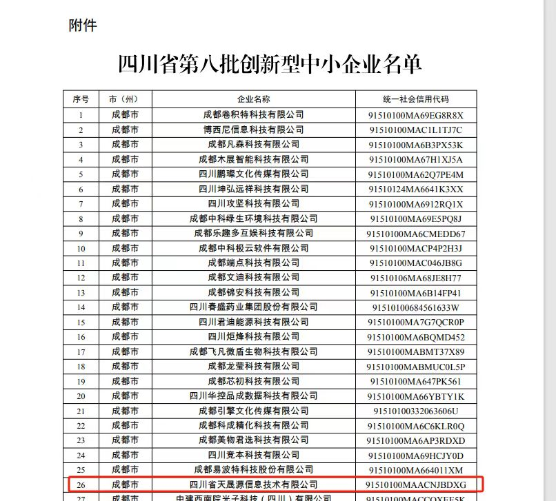 近日,經(jīng)四川省科學(xué)技術(shù)廳、四川省經(jīng)濟(jì)和信息化廳審核認(rèn)證,天晟源環(huán)保全資子公司四川省天晟源信息技術(shù)有限公司(以下簡(jiǎn)稱(chēng)“天晟源信息”)憑借扎實(shí)的核心業(yè)務(wù)、強(qiáng)勁的創(chuàng)新技術(shù)和研發(fā)能力成功榮獲四川省“科技型中小企業(yè)”“創(chuàng)新型中小企業(yè)”雙重認(rèn)定。